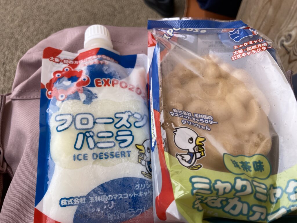 大屋根リングを一周し終えてからは、下に降りて「みゃくみゃくくんアイス」でひと休み。