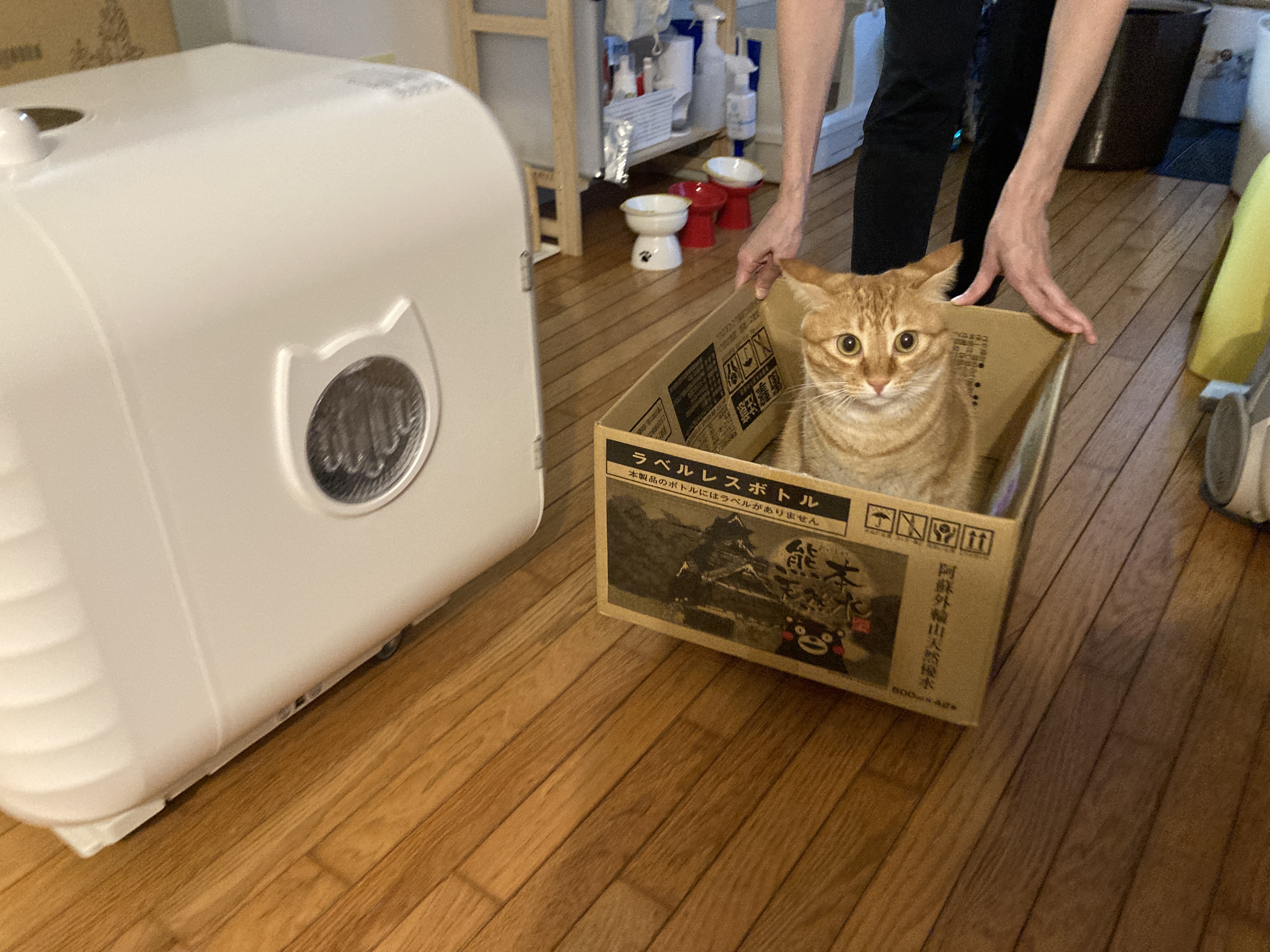 しかも今回の箱は、熊本の天然水が入っていた「くまもん」のイラスト付き📦💕
