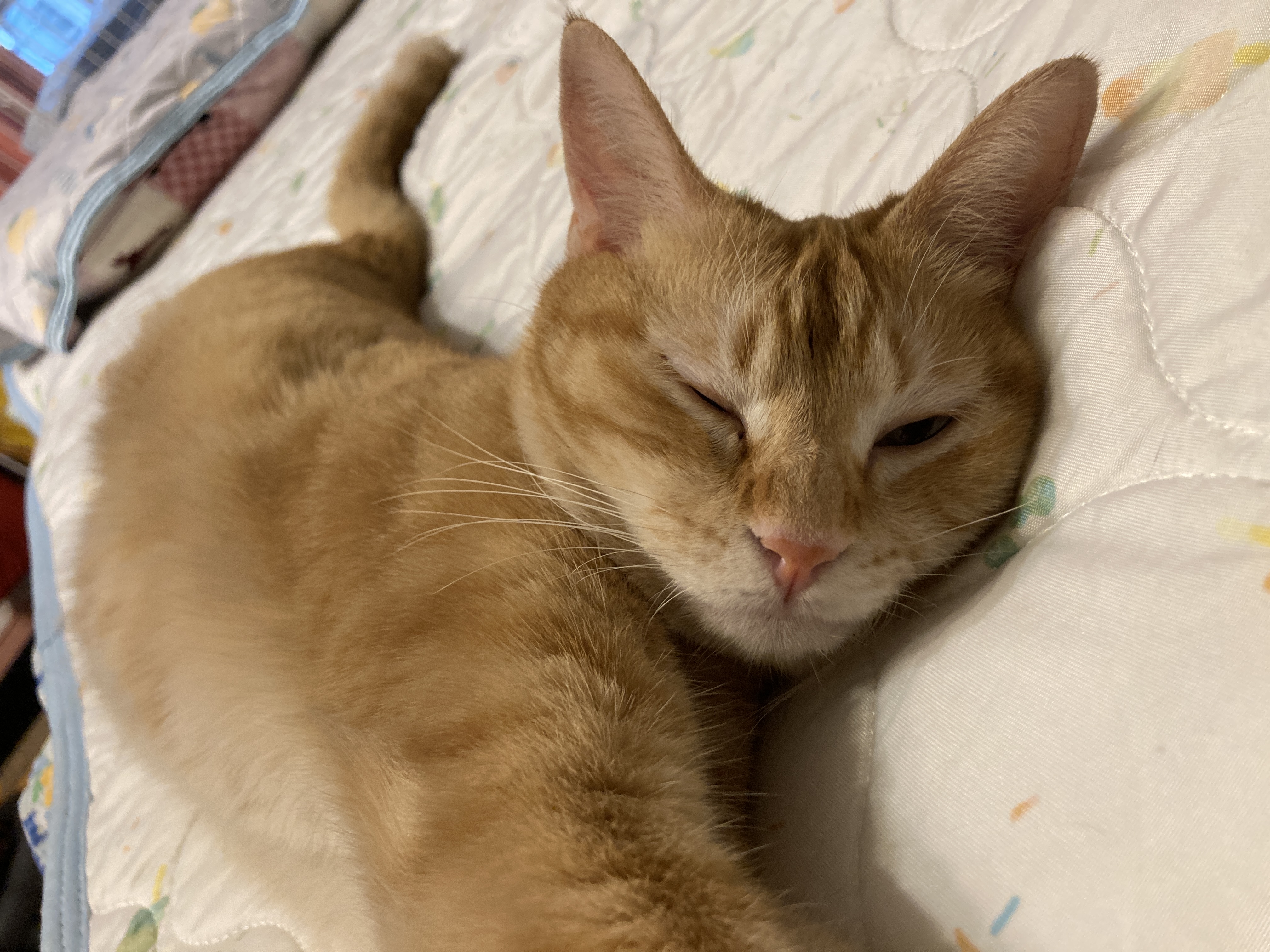 写真を撮っていると、片目を少し開けて「にゃに?📸」と不思議そうな顔を見せたり、またウトウトして夢の世界へ戻ったり…