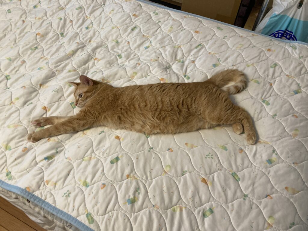 布団の上でゴロ〜ンとのびのび…思わずクスッと笑ってしまう“にゃん文字”ポーズを披露してくれました🐾💕