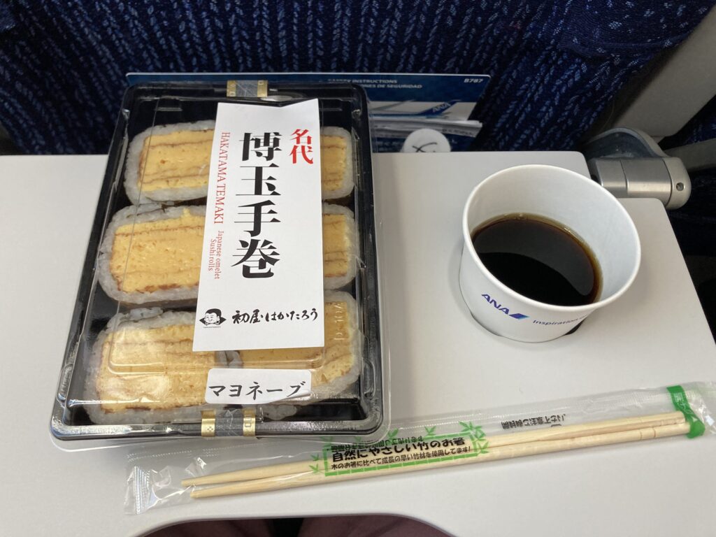 今回の空の旅のお供は、博多の名物「玉子巻き寿司」✨