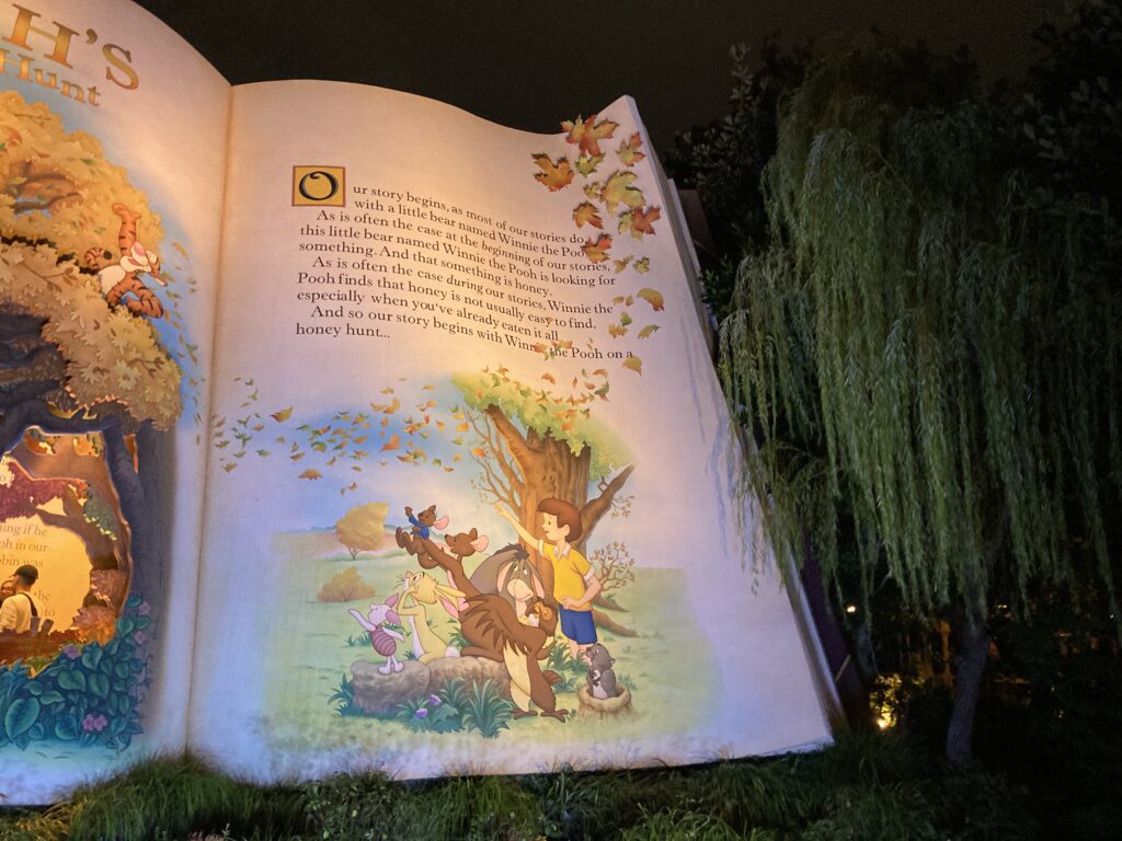 入口にある巨大な絵本がライトアップされていて幻想的📖🌙