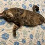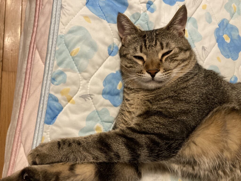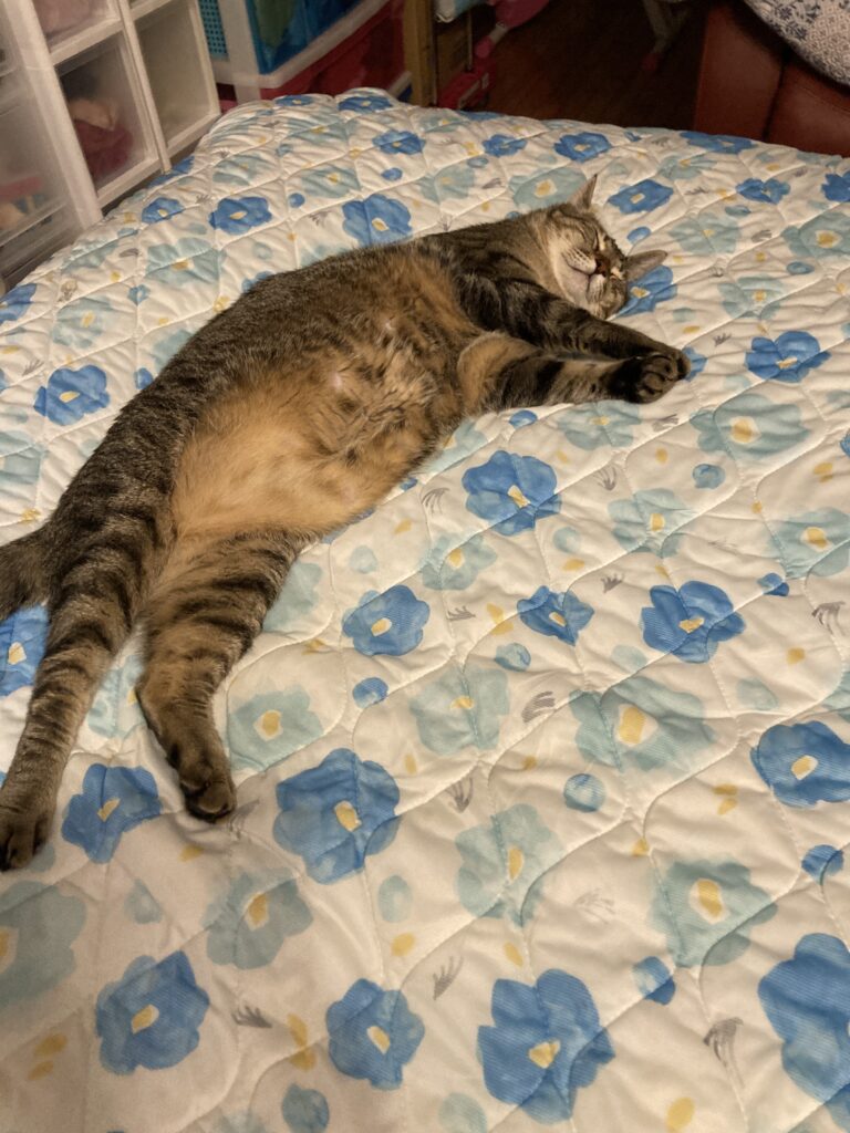 背中をなでると、のび〜っと手足を伸ばして、満足そうな顔🐾