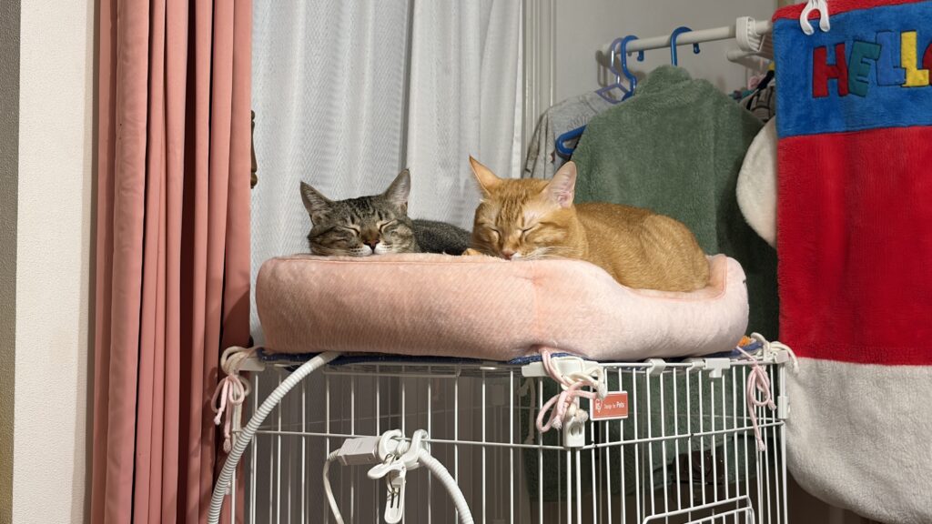 寝るときも遊ぶときも、いつも一緒の黒豆ちゃん&麦ちゃん。