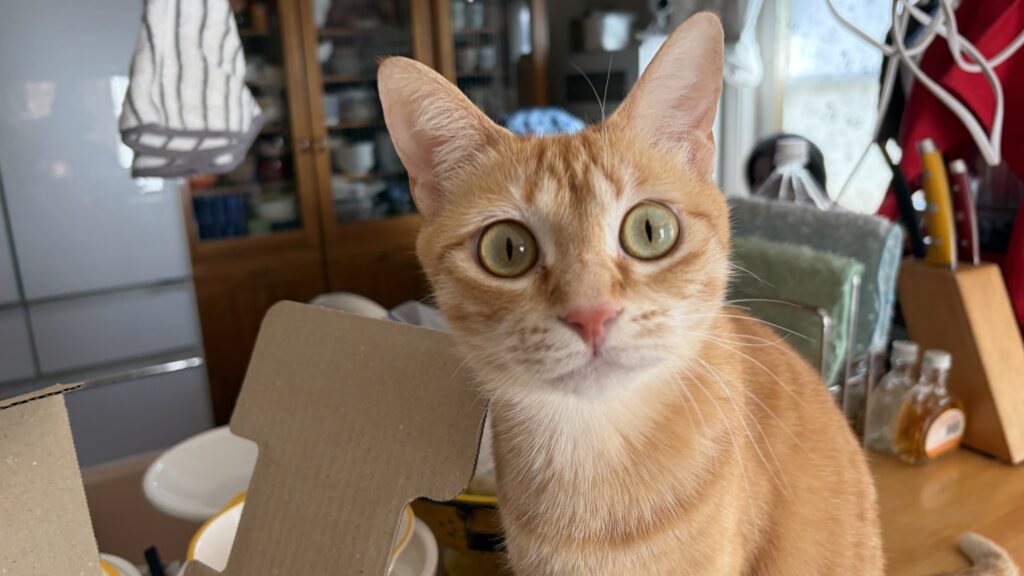 猫のおやつが届いた日の、桃ちゃんの可愛い反応を写真たっぷりで記録しました🐾
